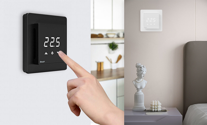 Egy ilyen eszköz a Heatit Z-TRM3 fali termosztát. Akár önállóan, de természetesen Z-Wave okosotthon rendszerbe illesztve is használhatjuk elektromos fűtőpanelek, fűtőszálak vagy relék kapcsolására (230V / max. 16A). De alkalmas 230V kapcsolófeszültséget használó kazánok vagy fűtésszelepek vezérlésére is. A Heatit fali szerelvényhez hasonlóan a Z-TRM3 is illeszkedik a System 55 szabványhoz, tehát sorolható más fali szerelvénygyártó (pl. GIRA) ilyen méretű kapcsolóival, dugaljaival.