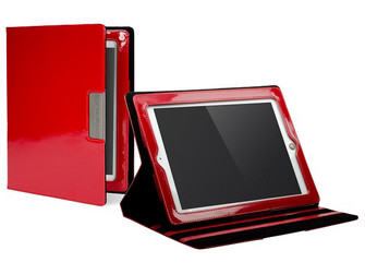 Füzetként nyitható lakkozott fényes bőr tok iPad2/3 tabletekhez, teljes körű védelmet nyújtva zárt állapotban. Kinyitva fekvő helyzetben háromféle szögben képes tartani az iPad-et.
