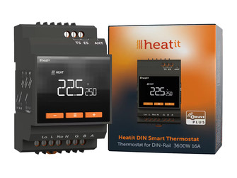 A Heatit DIN Smart Thermostat egy DIN-sínre szerelhető okostermosztát, amelyet elsősorban elektromos fűtések vezérlésére terveztek, de más fűtési rendszerekhez is rugalmasan alkalmazható. A készülék akár 3600W (16A) teljesítménnyel is terhelhető, így nagyobb fogyasztók vezérlésére is alkalmas. Fűtés, hűtés és Eco üzemmódokban használható, és központi elosztószekrényben, szabványos DIN-sínre pattintható.
