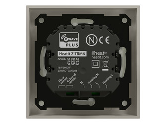 A Heatit Z-TRM6 egy fali termosztát, melyet elsősorban elektromos fűtések vezérlésére terveztek mivel akár 3600W (16A) teljesítménnyel is terhelhető. De emellett természetesen más fűtési rendszerek vezérlésére is alkalmas. Fűtés, hűtés és Eco üzemmódokban használható. Szabványos fali szerelvénydobozba szerelhető, és a többi Heatit fali szerelvényhez hasonlóan ez is illeszkedik System 55 szabványhoz, tehát sorolható az ilyen méretű kapcsolókkal.