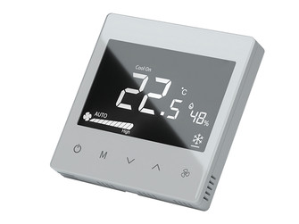 A MCO MH5‑4A egy modern, falra szerelhető, érintőgombos termosztát, amelyet kifejezetten 4‑csöves fan‑coil rendszerek pontos és hatékony vezérlésére terveztek. A készülék folyamatosan méri a helyiség hőmérsékletét, és a beállított értékhez viszonyított eltérés alapján automatikusan szabályozza a ventilátor sebességét. A termosztát így gyorsan reagál a hőmérséklet‑változásokra, miközben stabil komfortot és energiatakarékos működést biztosít mind hűtési, mind fűtési üzemmódban.