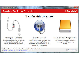 A csomag tartalmaz programot az adatok PC-ről Mac-re történő átviteléhez. Pár kattintás, és a Parallels Transporter hálózaton, vagy USB-n keresztül átmásolja a PC-ről a szükséges dokumentumokat, fotókat, zenéket a PC-ről a megfelelő Mac OS X mappákba. Átmásolja a könyvjelzőket és a beállításokat az Internet Explorer, Firefox, vagy Chrome PC-s böngészőkből az alapértelmezett Mac OS X böngészőbe.