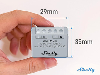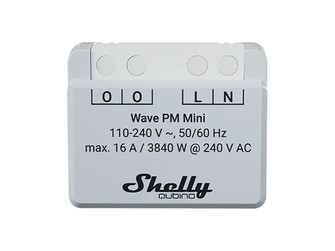 A Shelly Wave PM mini egy szerelvénydobozba szerelhető fogyasztásmérő modul. Maximum 16A-ig használható. Z-Wave 800 eszköz. A modul túlmelegedés és túlterhelés elleni védelemmel is ellátta a gyártó, így biztonságos működést garantál a fali szerelvénydobozokba szerelt kis helyen is. Kis méretének köszönhetően sokoldalúan használható bármilyen elektromos eszköz fogyasztásának mérésére.