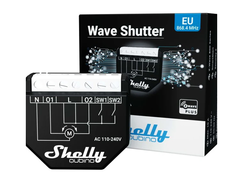 A Shelly Wave Shutter egy szerelvénydobozba szerelhető redőnyvezérlő modul. Redőnyök, zsaluziák, motoros árnyékolók vezérlésére alkalmas. Méri a csatlakoztatott eszköz energiafogyasztását is. Két kapcsoló bemenettel is rendelkezik, így a hagyományos fali redőnykapcsoló is tovább használható. Z-Wave 800 technológiát használ.